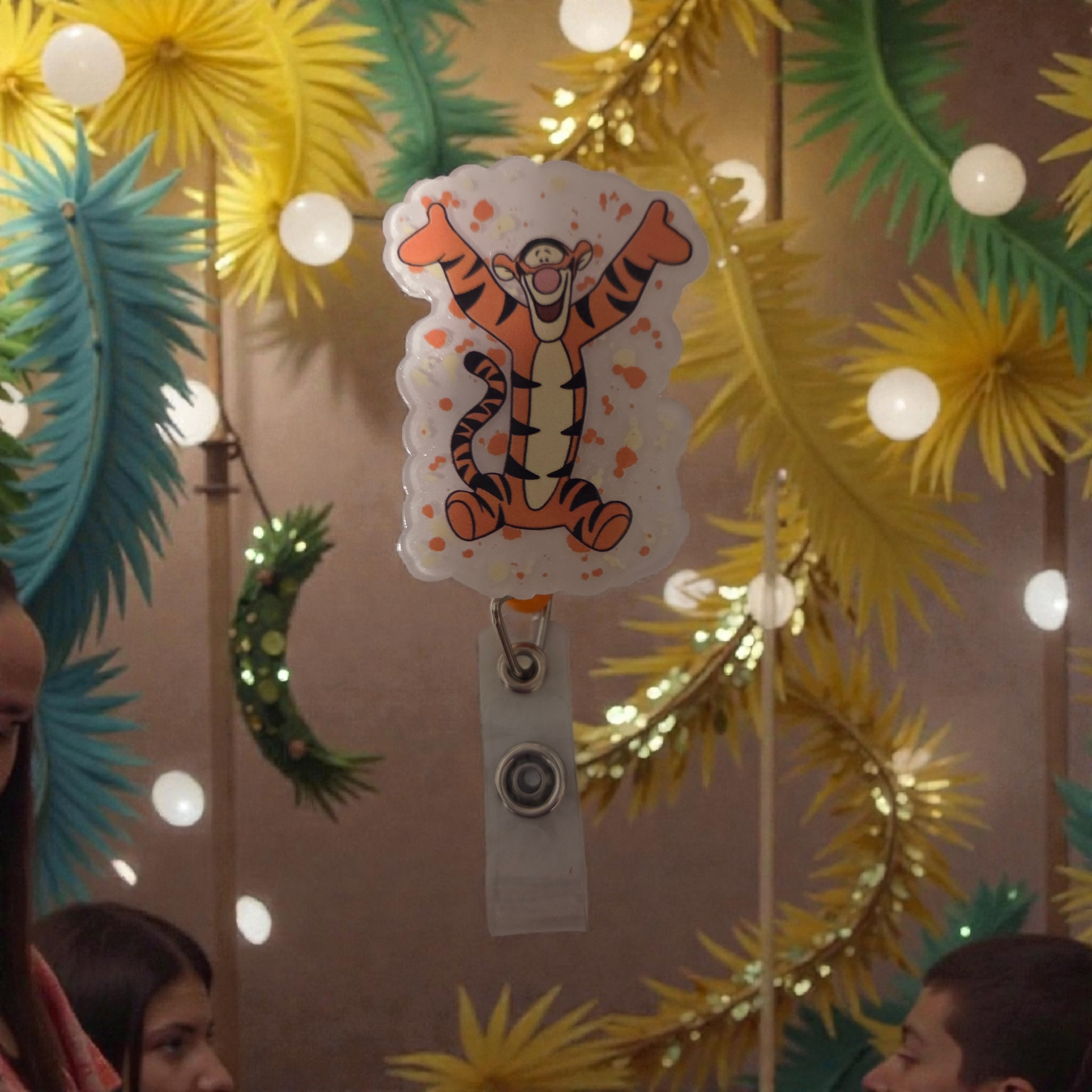 Introducing the Adorable Tigger Acrylic Retractable Badge Reel - the perfect accessory to keep your ID or security badge close at hand. Made from durable acrylic, this badge reel is both cute and functional. With its retractable design, you can easily access your badge without the hassle of removing it from your clothing or bag. Stay organized and stylish with this must-have badge reel.