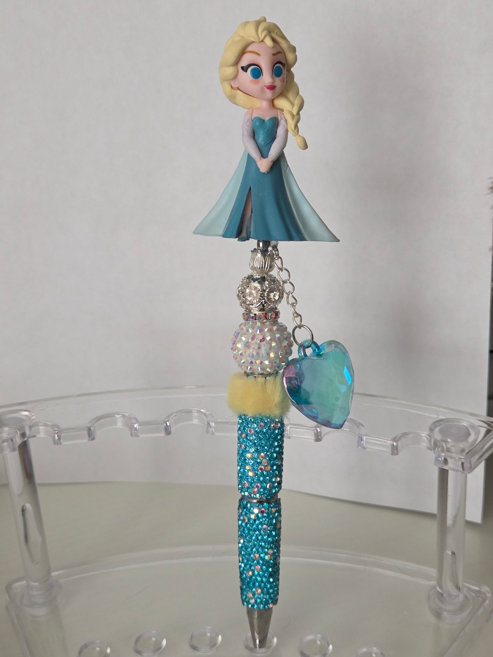 "Frozen" Inspired Rhinestone Beaded Pen. So Pretty. Acrylic Beads. Black Ink.