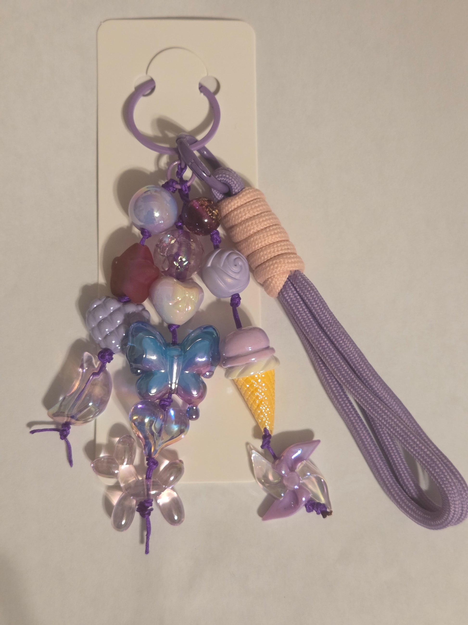 Cute Handmade Acrylic Keychain. Purple colors as well as other beautiful colors. Acrylic Beads and Charm Beads. Metal Keyring.